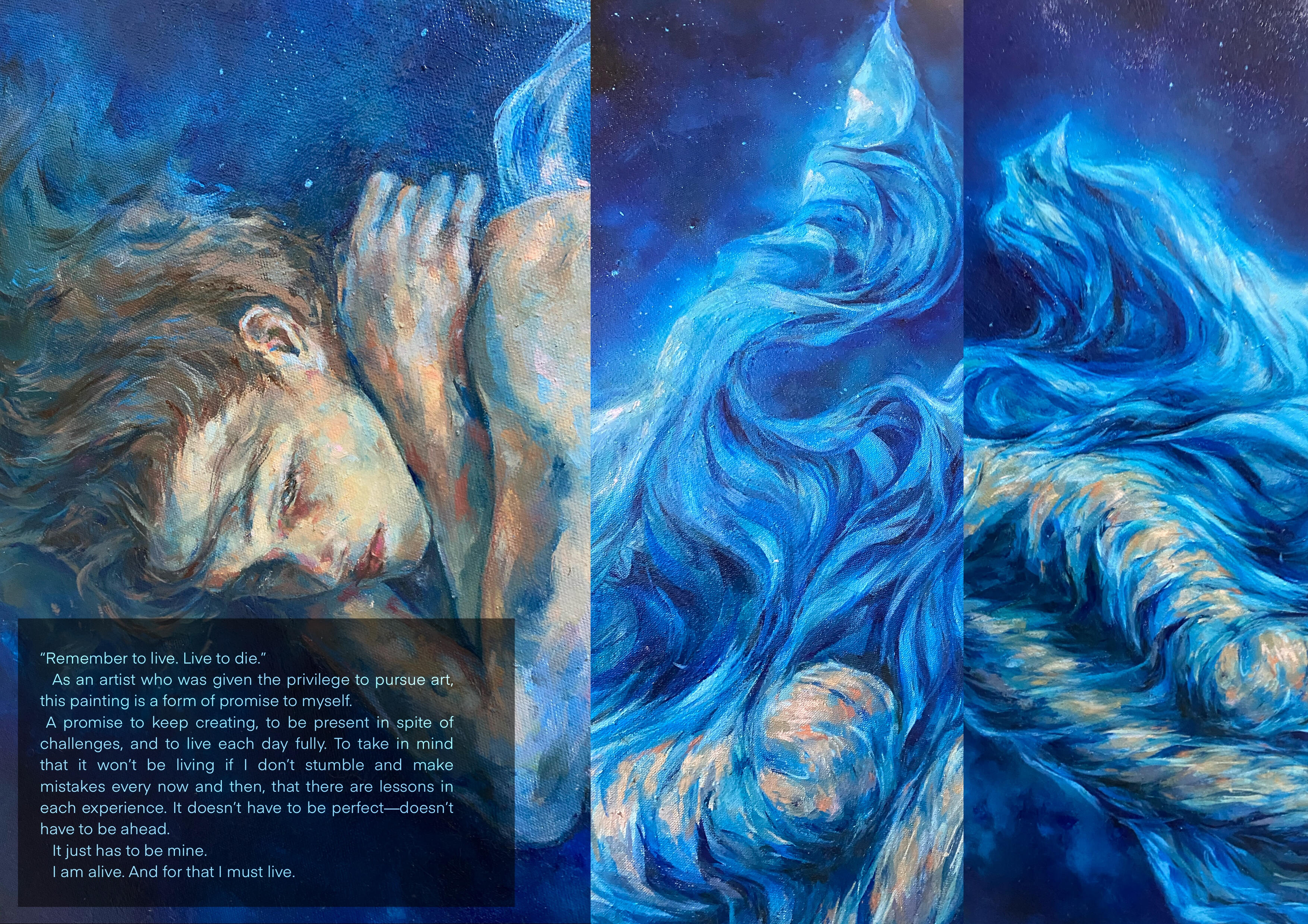 As an artist, my goal is to create immersive works that can deliver different emotions and viewpoints to the audience. I aim for my audience to be heard and understood; as every art tells a different story, evokes different emotions—and each one is just as important as the other.